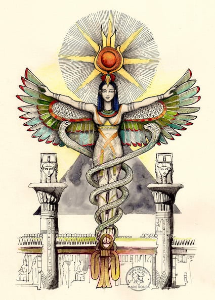 Illustration à l’encre et feutre de la déesse Egyptienne ISIS,